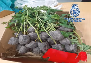 Una vez abierta la caja, los policías observaron que contenía una bolsa de plástico transparente y ésta a su vez 55 plantones de cannabis sativa, que presentaban el cepellón en buenas condiciones de humedad y conservación para su transporte y trasplante, así como, presumiblemente, para su posterior cultivo. El portador de la caja fue detenido en ese mismo momento y trasladado a dependencias de la comisaría provincial.