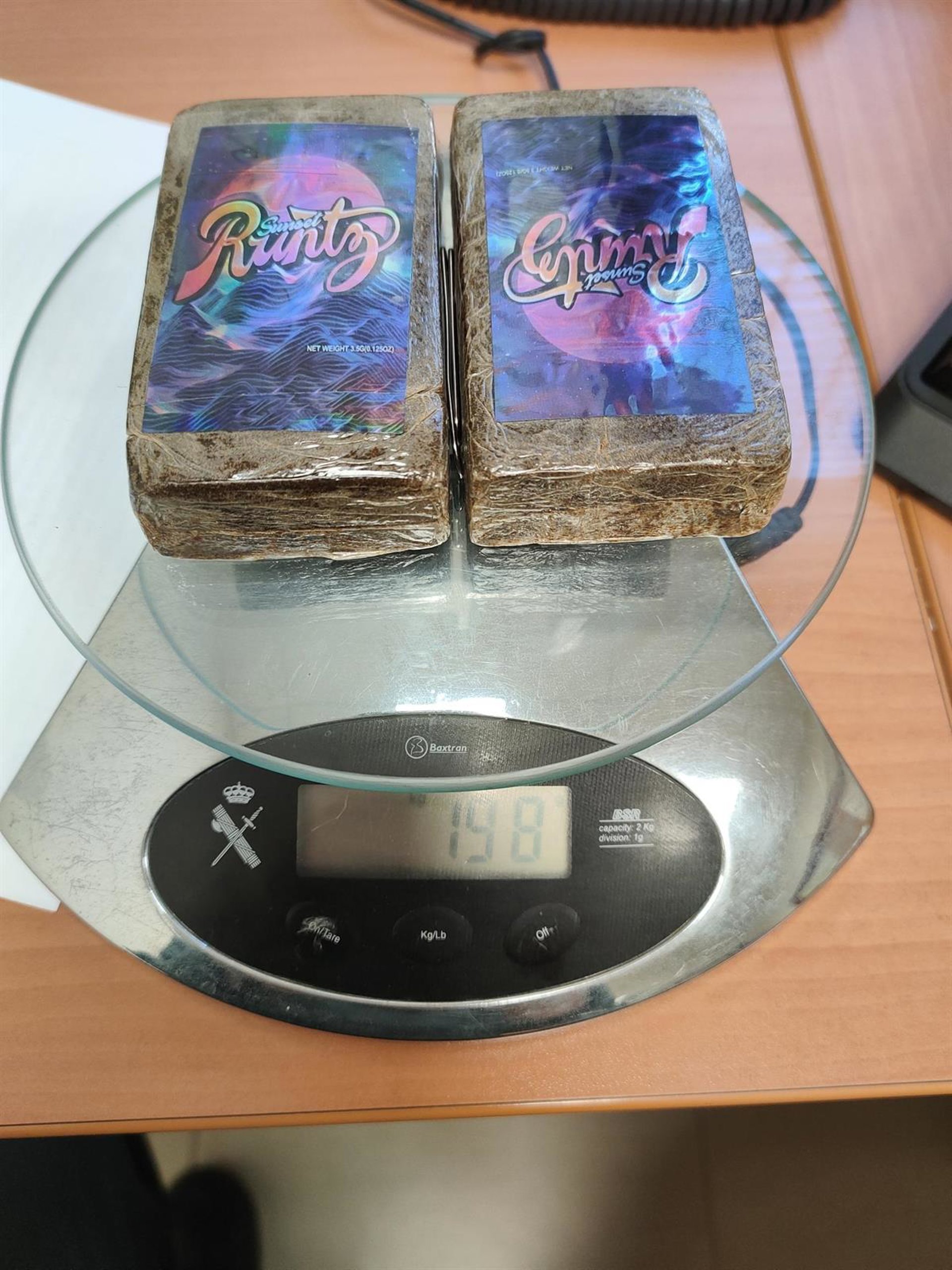 Tras interceptarlo y proceder a su identificación, se le solicitó que mostrase sus pertenencias, así como el equipaje que portaba, con lo que los agentes acabaron localizando en el interior de una mochila, una bolsa embalada herméticamente, "que contenía en su interior dos placas de una sustancia resinosa de origen vegetal, de color marrón y aromática, que podía ser hachís de un peso aproximado en el momento de unos 200 gramos", ha descrito el Instituto Armado.