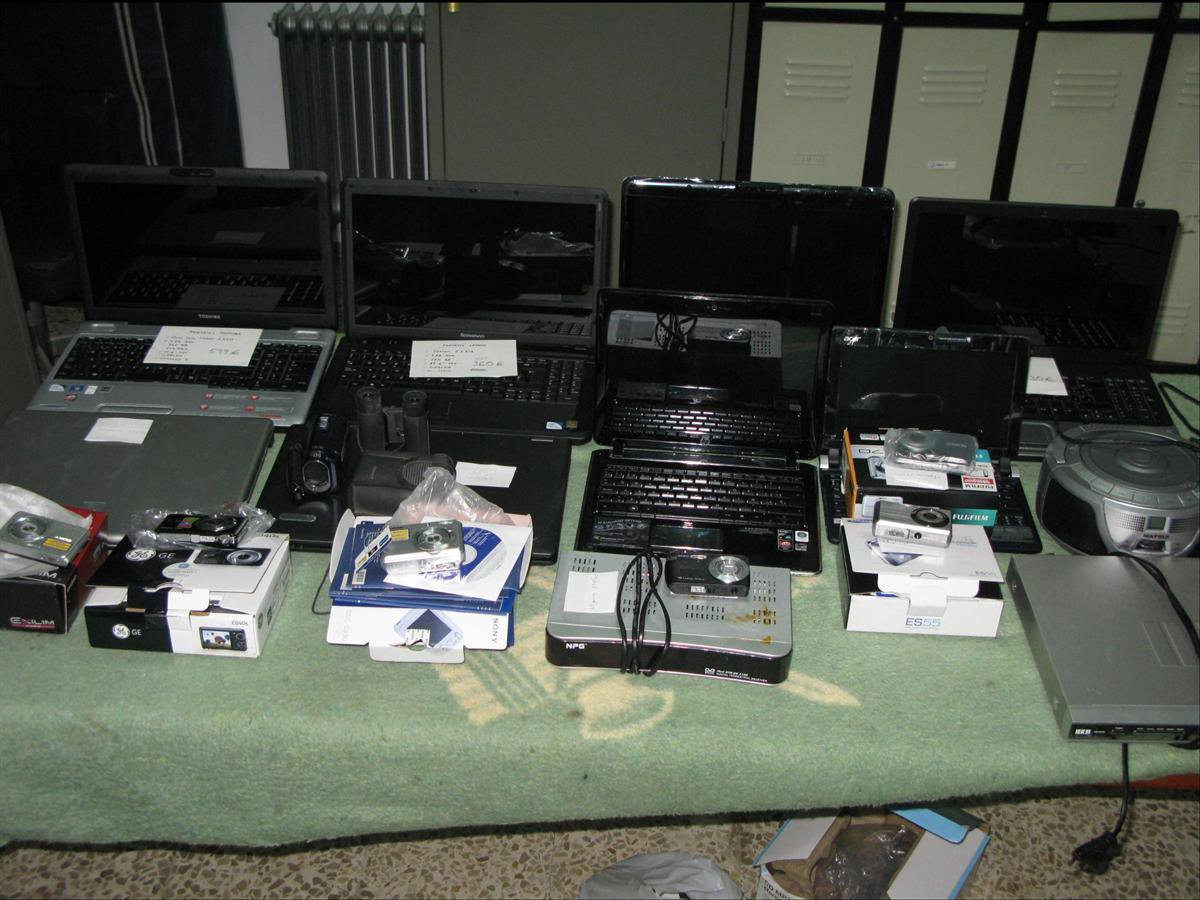Además, los agentes realizaron un registro en una vivienda de la citada localidad, previo mandamiento judicial, en el cual fueron recuperados efectos que están valorados en unos 8.600 euros. En concreto, se encontraron siete cámaras fotográficas digitales, ocho ordenadores portátiles, dos sintonizadores de TDT, un reproductor de DVD, una videocámara digital, un reproductor CD MP3, un binocular, tres ratones de ordenador, varios cargadores y cables de conexión.