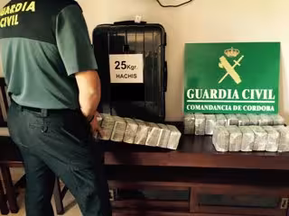 La Guardia Civil ha detenido en Lucena (Córdoba) a un vecino de Málaga, de 36 años, como supuesto autor de un delito contra la salud pública por tráfico de drogas, interviniéndole un total de 25 kilos de hachís que portaba en su maleta cuando viajaba en autobús por la A-45.