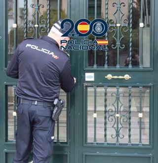 Agente de la Policía Nacional en la puerta de un edificio. - POLICÍA NACIONAL