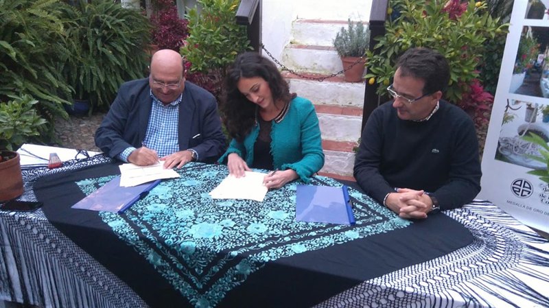 La delegada de Turismo de la Diputación de Córdoba, Carmen María Gómez, y el presidente de la Asociación Amigos de los Patios de Córdoba, Miguel Ángel Roldán, junto al tesorero de la asociación, José Manuel Hernández, han firmado este acuerdo, que establece una serie de acciones, entre las que se incluye el adecentamiento de los patios para realizar acciones de 'famtrip' y 'presstrip' --visitas de agencias de viajes, touroperadores y medios de comunicación-- durante todo el año, así como el asesoramiento en iniciativas de promoción y la difusión de material promocional.