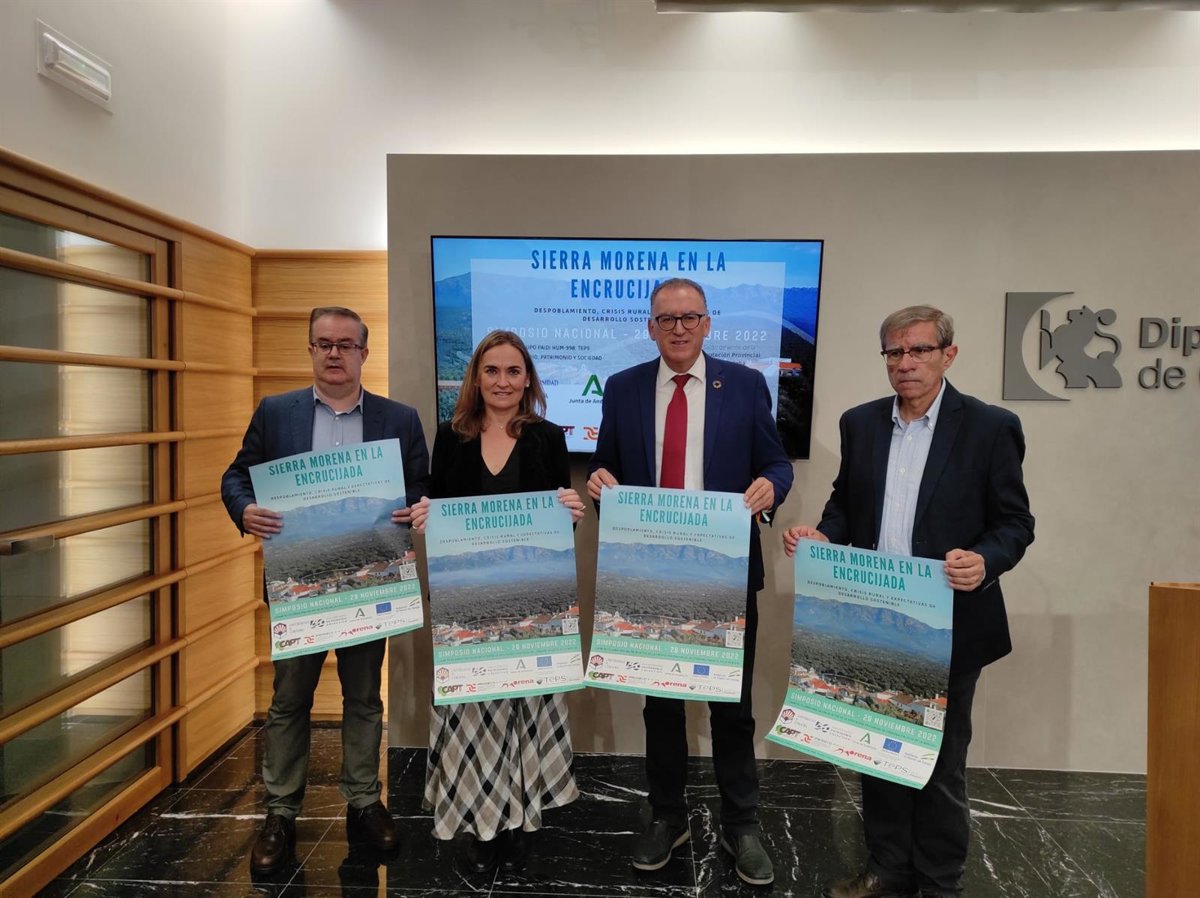 El delegado de Cohesión Territorial de la Diputación de Córdoba, Juan Díaz (segundo por la dcha.), en la presentación del simposio 'Sierra Morena en la encrucijada'. - EUROPA PRESS