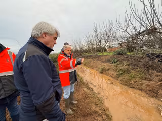 El presidente de la Diputación de Córdoba, Salvador Fuentes (con vestimenta naranja), visita la zona en la que se ha actuado.
