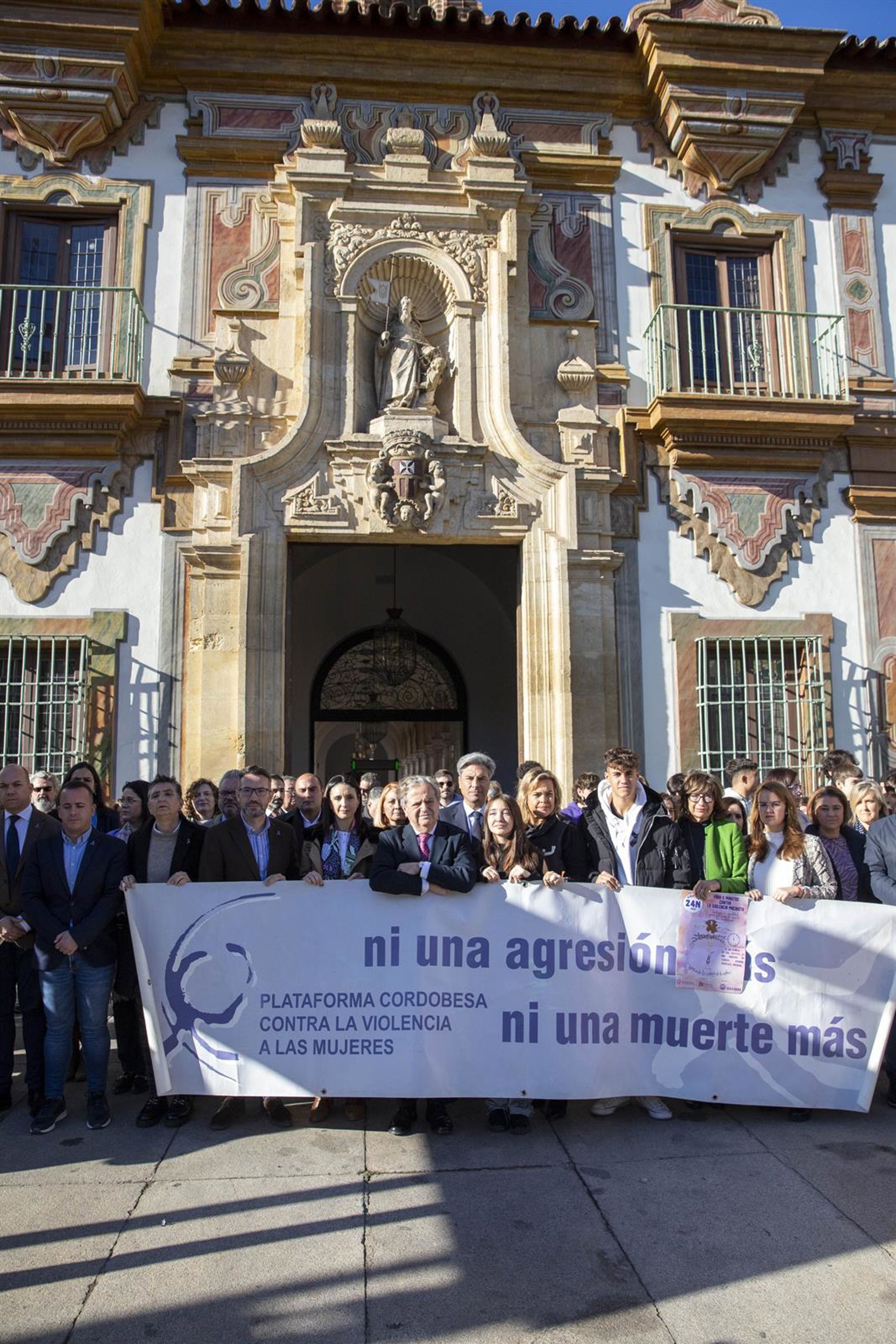 El presidente de la Diputación de Córdoba, Salvador Fuentes (centro), en la concentración por el 25N ante el Palacio de la Merced. - DIPUTACIÓN DE CÓRDOBA