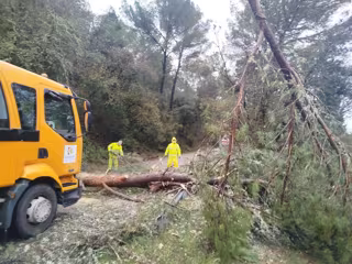 Archivo - Operarios de la Diputación de Córdoba trabajando en la retirada de un árbol caído sobre una carretera provincial durante el pasado temporal. - DIPUTACIÓN DE CÓRDOBA - Archivo