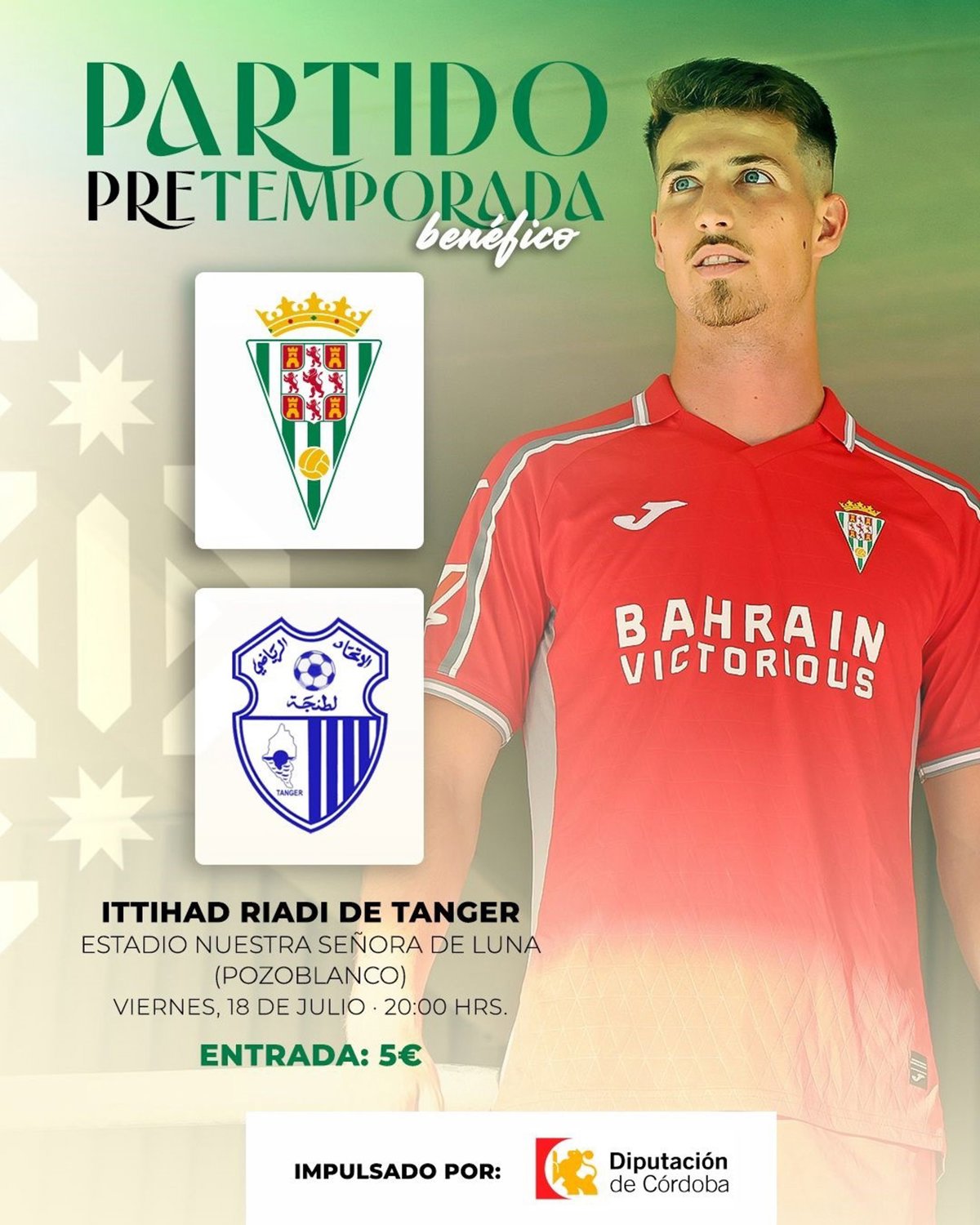 La Diputación de Córdoba y el Córdoba Club de Fútbol han sumado esfuerzos junto con el Ayuntamiento de Pozoblanco para llevar la pretemporada a la provincia. De esta manera, el conjunto blanquiverde disputará un nuevo encuentro de preparación este viernes, 18 de julio, a las 20,00 horas en el Estadio Nuestra Señora de Luna de Pozoblanco frente al conjunto de la Primera División marroquí Ittihad Riadi Tánger.