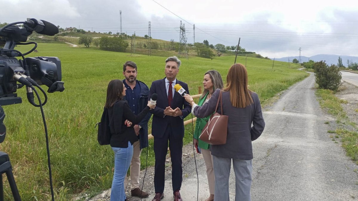 Andrés Lorite atiende a los medios, junto a la alcaldesa de Baena, María Jesús Serrano, en la Vía Verde del Aceite. - DIPUTACIÓN DE CÓRDOBA