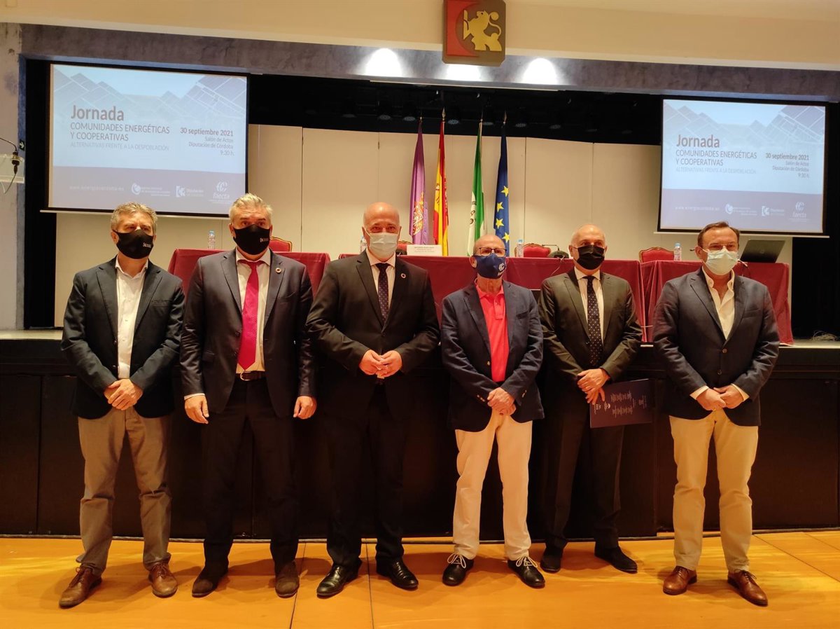 El presidente de la Diputación, Antonio Ruiz (tercero por la izda.), en la inauguración de las jornadas sobre cooperativas locales energéticas. - EUROPA PRESS