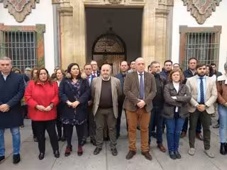 Miembros de la Corporación de la Diputación de Córdoba, encabezada por su presidente, Antonio Ruiz, y con la presencia del alcalde de Posadas (Córdoba), Emilio Martínez, han participado este martes en una concentración silenciosa de cinco minutos a las puertas del Palacio de la Merced para mostrar su rechazo ante el último crimen de una mujer, madre de dos hijos mayores de edad, en la localidad malena a manos de su pareja, de la que estaba en trámites de separación.