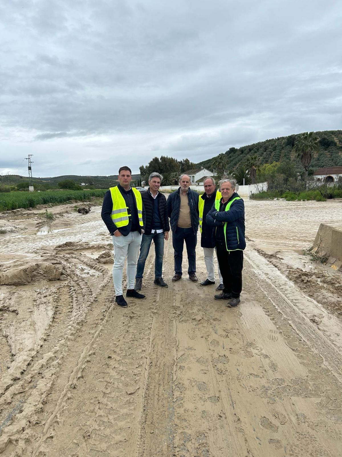 El presidente de la Diputación de Córdoba, Salvador Fuentes, en su visita a la carretera CO-4207 que va de Montilla a Montalbán, cortada por el desbordamiento del arroyo Salado. - DIPUTACIÓN DE CÓRDOBA