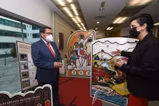 El presidente de la Diputación de Granada, José Entrena, ha visitado este viernes en la sede de la institución provincial la exposición 'En femenino mayúscula', una muestra sobre igualdad en la práctica deportiva.