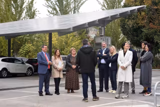 El presidente, junto a la diputada de Empleo y Desarrollo Sostenible, Ana Muñoz, han mostrado a la delegación la nueva pérgola fotovoltaica que se ha instalado en los aparcamiento de edificio CIE (Centro de Iniciativa Empresarial) de la Diputación de Granada, financiado por el programa Feder a través de IDAE-Economía Baja en Carbono.