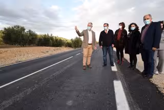 El presidente de la Diputación de Granada, José Entrena, el diputado de Obras Públicas y Vivienda, José María Villegas, y el alcalde de Huétor Tájar, Fernando Delgado (PSOE), junto a miembros de la corporación municipal, han visitado este sábado la carretera de la red provincial GR-4407, que conecta los municipios de Huétor Tájar con La Esperanza (Loja), en la que se han invertido más de 231.000 euros para la mejora del firme.