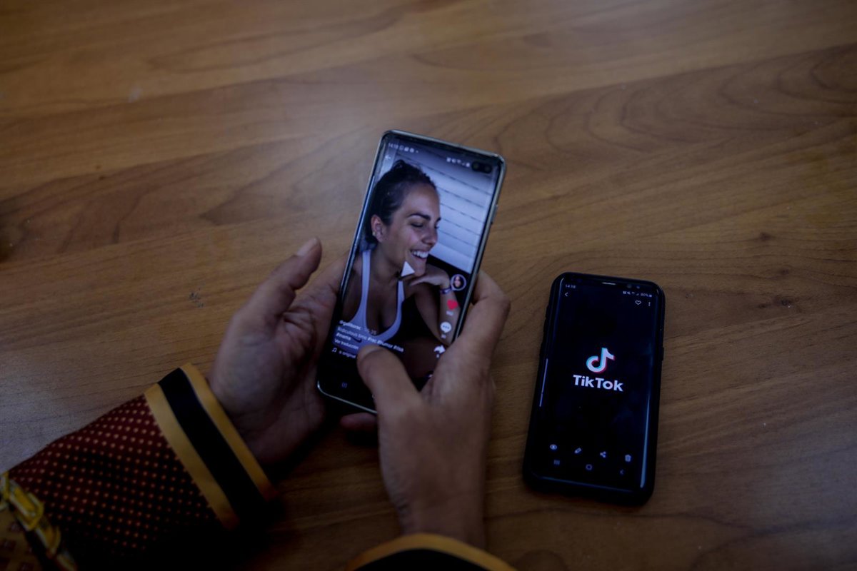 Archivo - Una persona mira en su móvil el vídeo de una joven en la red musical Tik Tok - Europa Press - Archivo