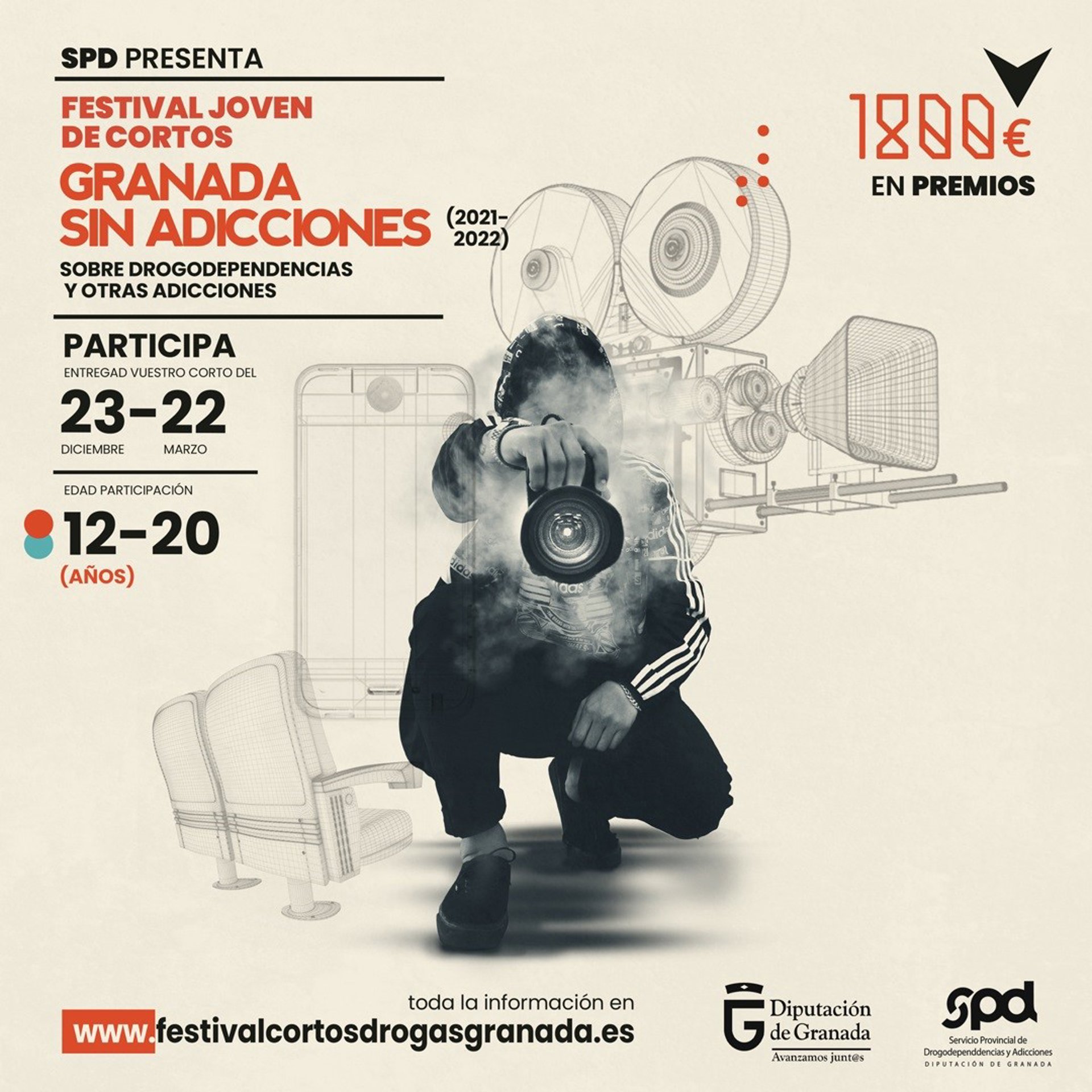 La Diputación de Granada, a través del Servicio Provincial de Drogodependencias, ha convocado el I Festival Joven de Cortos 'Granada sin Adicciones', un concurso de cortometrajes que persigue que los adolescentes y jóvenes de entre 12 y 20 años elaboren sus propios mensajes audiovisuales para concienciar sobre los riesgos de las drogas y otras adicciones.