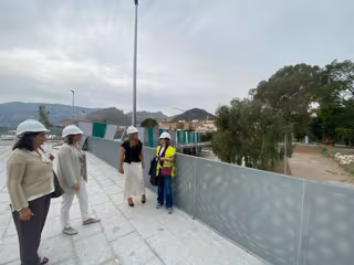 Archivo - Sandra Moraleda (2i), junto a la delegada de Salud, Elena González (2d), en una visita a las obras del centro de salud de la Alameda. - JUNTA - Archivo