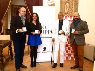 El Salón de los Mosaicos del Alcázar de los Reyes Cristianos de Córdoba ha servido de escenario este martes para la presentación, por el diseñador Elio Berhanyer y el perfumista Paco Rosales, del perfume Eliotroppo, en un acto en el que también han tomado parte la presidenta y el secretario general de AJE en Córdoba, Marisol Chacón y Manuel García, respectivamente.