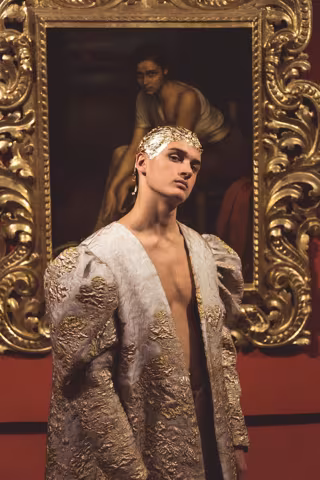 Para la realización de la presentación, la marca ha contado con Candela Pliego como directora de arte, con el equipo de Juanchy García como fotógrafos y con el maquillador Maxi Galván, quien ha creado para la ocasión un maquillaje con pan de oro con el objetivo de "unificar las prendas de Hugo con las obras museísticas que creara Julio Romero en su día".