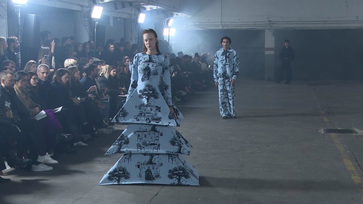 El diseñador jiennense Leandro Cano ha presentado este martes en el Madrid Fashion Show su nueva colección 'Menú', inspirada en parte de su niñez, infancia y sus comienzos en el mundo de la costura.