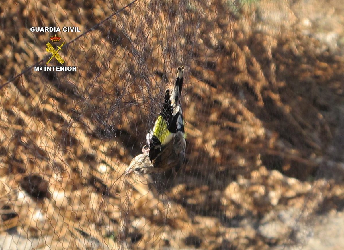 La Guardia Civil ha puesto a disposición judicial a un vecino de Motril (Granada) de 27 años acusado de un delito contra la flora y la fauna por la captura ilegal de jilgueros con una red de las denominadas japonesas.
