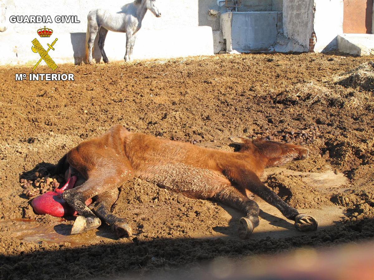 Poco después los agentes del Seprona comprobaron que se trataba de una yegua recién parida con la placenta aún colgando de su cuerpo y que aún estaba vía, ya que sufría espasmos. La Guardia Civil averiguó también que la yegua llevaba en ese estado cuatro días y que durante ese tiempo no había recibido ningún tipo de ayuda veterinaria.