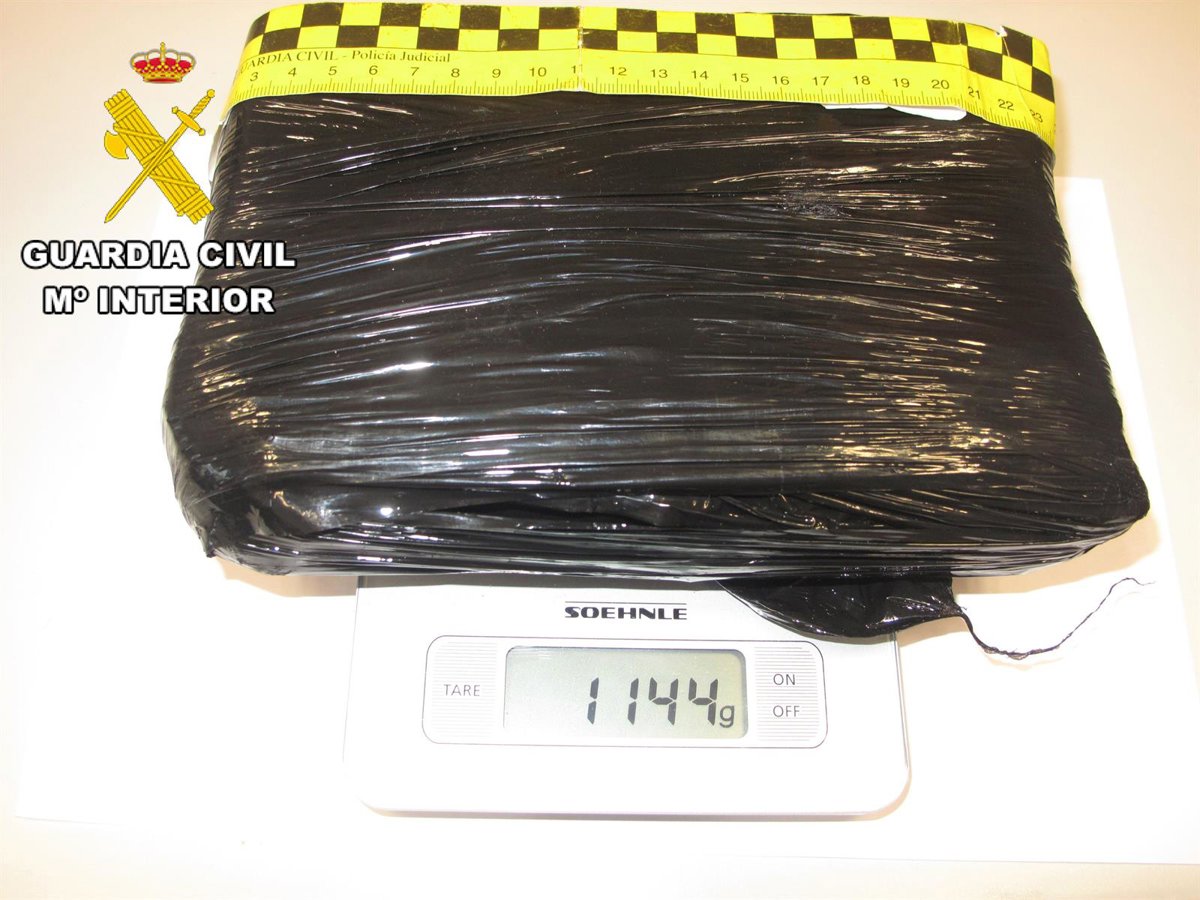 Los guardias civiles procedieron a darle el alto para identificar a sus ocupantes y localizaron en el interior del vehículo un paquete que contenía 1.144 gramos de cocaína.