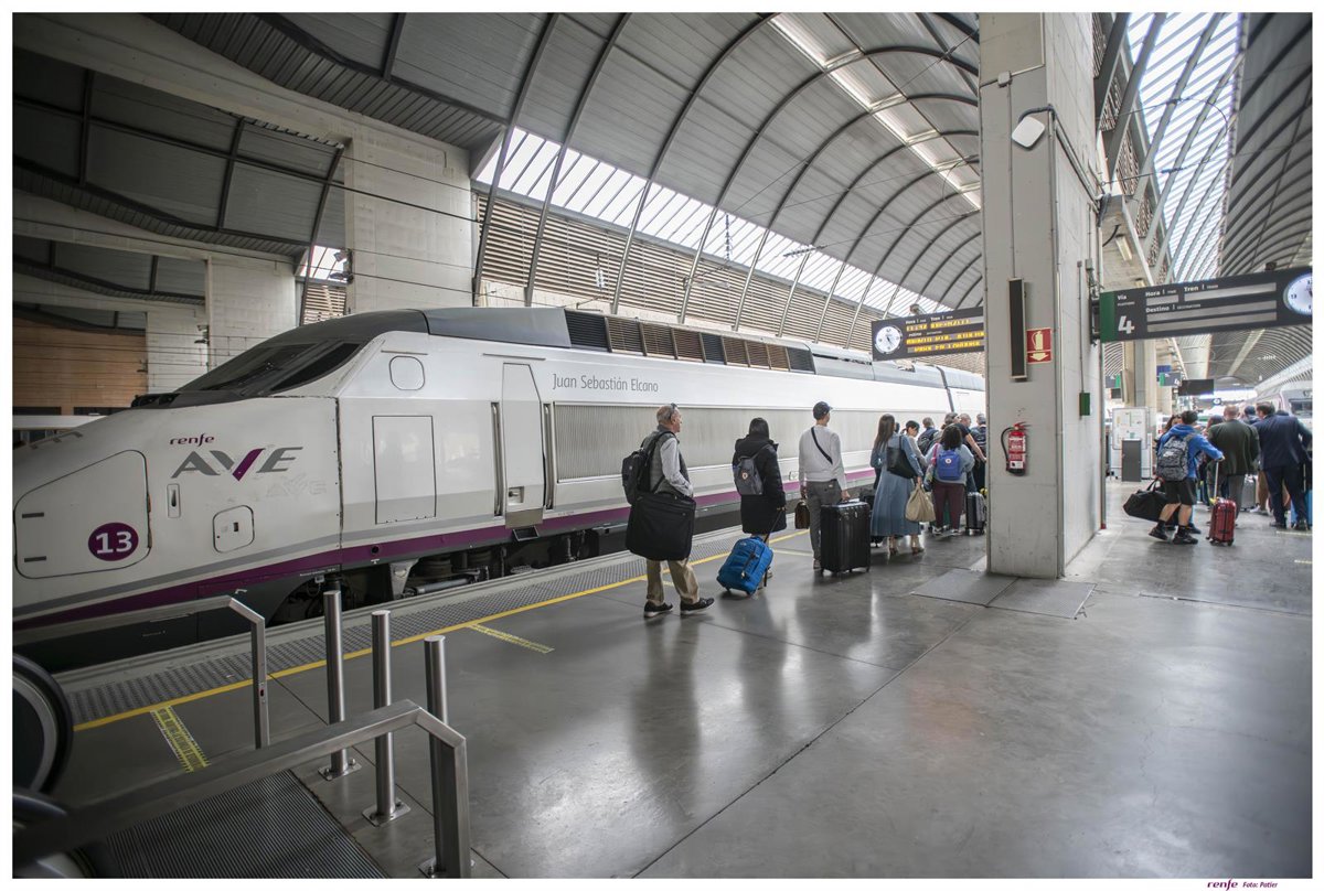 Archivo - Viajeros en una estación de tren. - RENFE - Archivo
