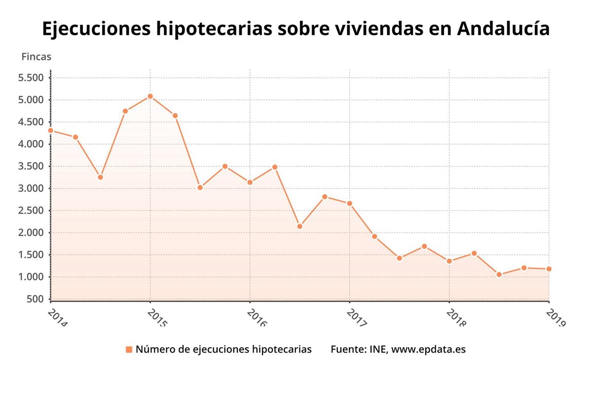 El número de ejecuciones hipotecarias sobre viviendas habituales se ha situado en el primer trimestre en Andalucía en 1.182, según la estadística de ejecuciones hipotecarias publicadas este miércoles por el Instituto Nacional de Estadística (INE), lo que supone un 12,6 por ciento menos que en el mismo periodo del año pasado.