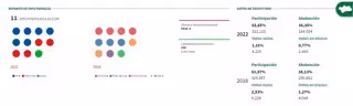Los datos relativos a votantes, abstención y nulos son los siguientes:
