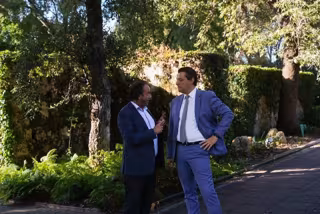 El alcalde, José María Bellido, y el presidente de Emacsa, Daniel García-Ibarrola, en el Real Jardín Botánico de Córdoba. - AYUNTAMIENTO DE CÓRDOBA