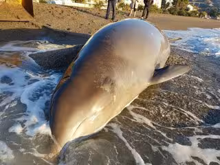 Según un comunicado del Ayuntamiento de Almuñécar, el encargado del Mantenimiento de Playas, Miguel Cabrera Martín, ha señalado que el cetáceo varado se ha encontrado sobre las 8,00 horas de este sábado y "en un principio se pensaba que estaba muerto, pero al acercarse los efectivos de Urbaser se constató que movía la aleta trasera con dificultad y que no era por el movimiento de las olas".