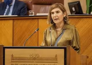 La consejera de Empleo, Rocío Blanco, este jueves en la tribuna de oradores del Parlamento de Andalucía. - PARLAMENTO DE ANDALUCÍA
