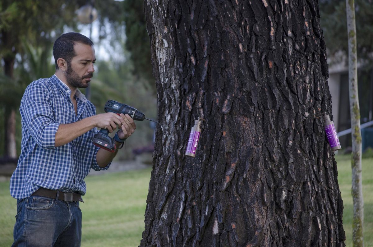 Con la implantación del sistema de inyecciones al tronco, esta empresa cordobesa evitará el vertido de los citados más de 300.000 litros de fitosanitarios y supondrá un ahorro de agua de más de 280 metros cúbicos, "ya que el tratamiento entra directamente en los vasos de xilema y de floema del árbol, actuando en la biología del pino de tal manera que evita la proliferación de la procesionaria, cuya etapa más virulenta es en primavera, pero cuyo desarrollo debe evitarse mediante estas actuaciones" preventivas.