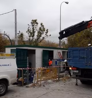 Técnicos instalando un nuevo centro de transformación en Puerto Lumbreras, en la Zona Norte de Granada - ENDESA