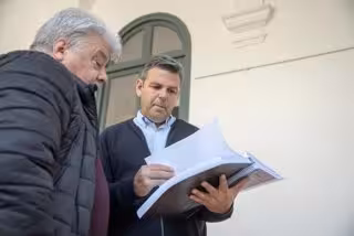 Antonio Manuel Rodríguez (dcha.) y Manuel Carmona repasan la queja y las 10.000 firmas de apoyo. - TONI BLANCO
