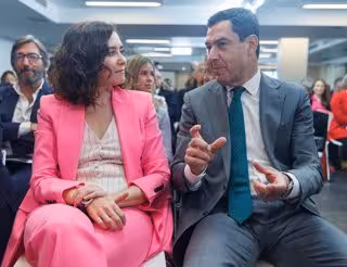 Archivo - La presidenta de la Comunidad de Madrid, Isabel Díaz Ayuso, y el presidente de la Junta de Andalucía, Juanma Moreno, en una imagen de abril de 2023. - Eduardo Parra - Europa Press - Archivo
