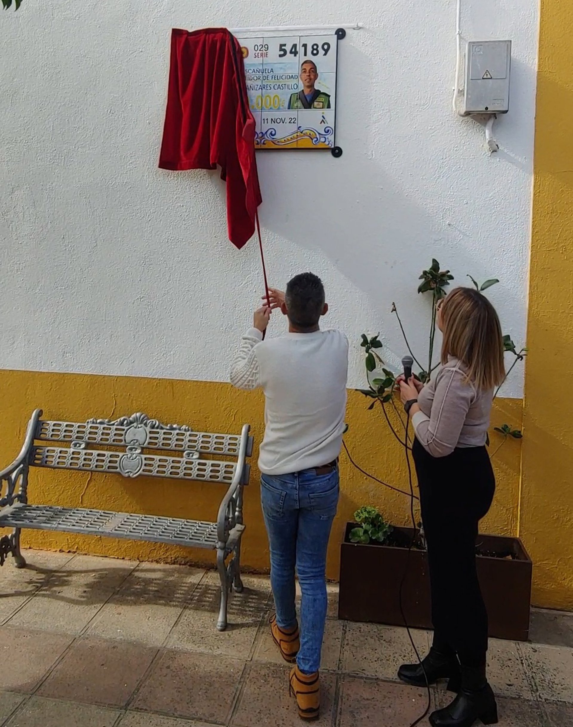 En concreto, el Ayuntamiento ha instalado una placa en la fachada del Centro Social que recuerda a este hombre que "tantas alegrías ha dado" en el pueblo con "una lluvia de millones" al vender 100 cupones del 54.189, según ha informado en una nota el Consistorio.