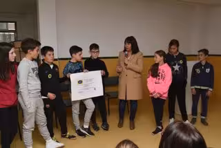Imagen de la entrega de la cantidad recaudada por los escolares de Montillana - DIPUTACIÓN
