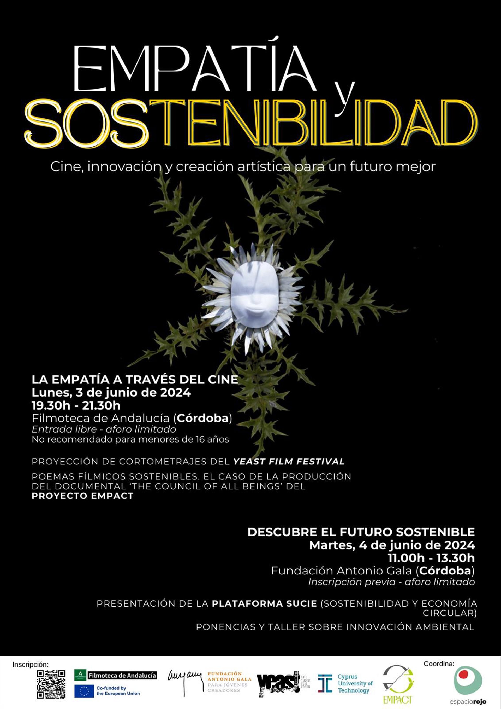 La Asociación Cultural Espacio Rojo, entidad sin ánimo de lucro que busca promover, divulgar y fomentar la cultura, la educación y el arte en la sociedad, llega, con actividades que giran en torno al cine y a la sostebilidad, a la Filmoteca de Andalucía y a la Fundación Antonio Gala de Córdoba, ambas en colaboración con el proyecto 'Empact' y el Yeast International Student Film Festival.