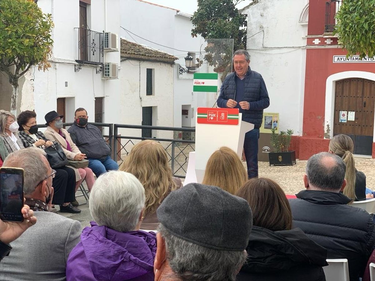 Juan Espadas ha visitado este sábado el municipio de Almadén de la Plata, en la comarca sevillana del Corredor de la Plata, junto al secretario general del PSOE de Sevilla, Javier Fernández.