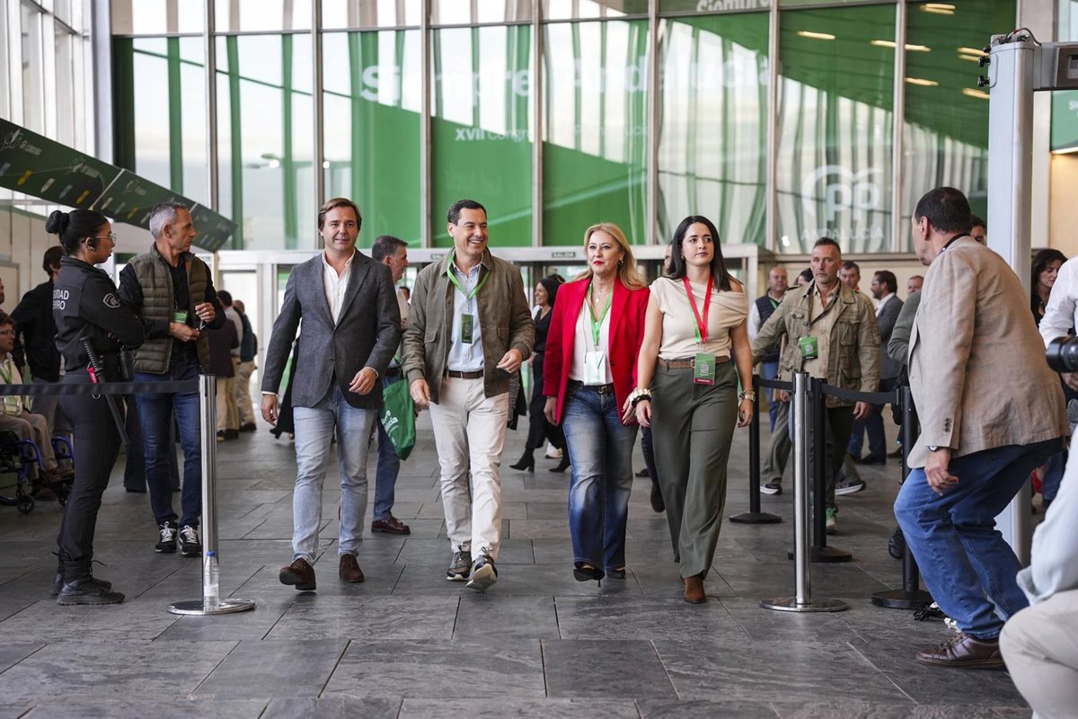 El presidente de la Junta de Andalucía, Juanma Moreno, durante el comienzo del XVII Congreso del PP Andaluz. A 7 de noviembre de 2025 en Sevilla, Andalucía (España). El Palacio de Exposiciones y Congresos de Sevilla (Fibes) acoge la inauguración del XVII - Francisco J. Olmo - Europa Press