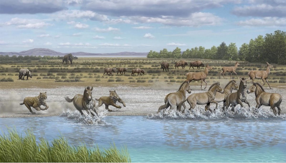 Recreación de Orce (Granada) antes de la llegada de los homínidos, hace 1,6 millones de años. - MAURICIO ANTÓN