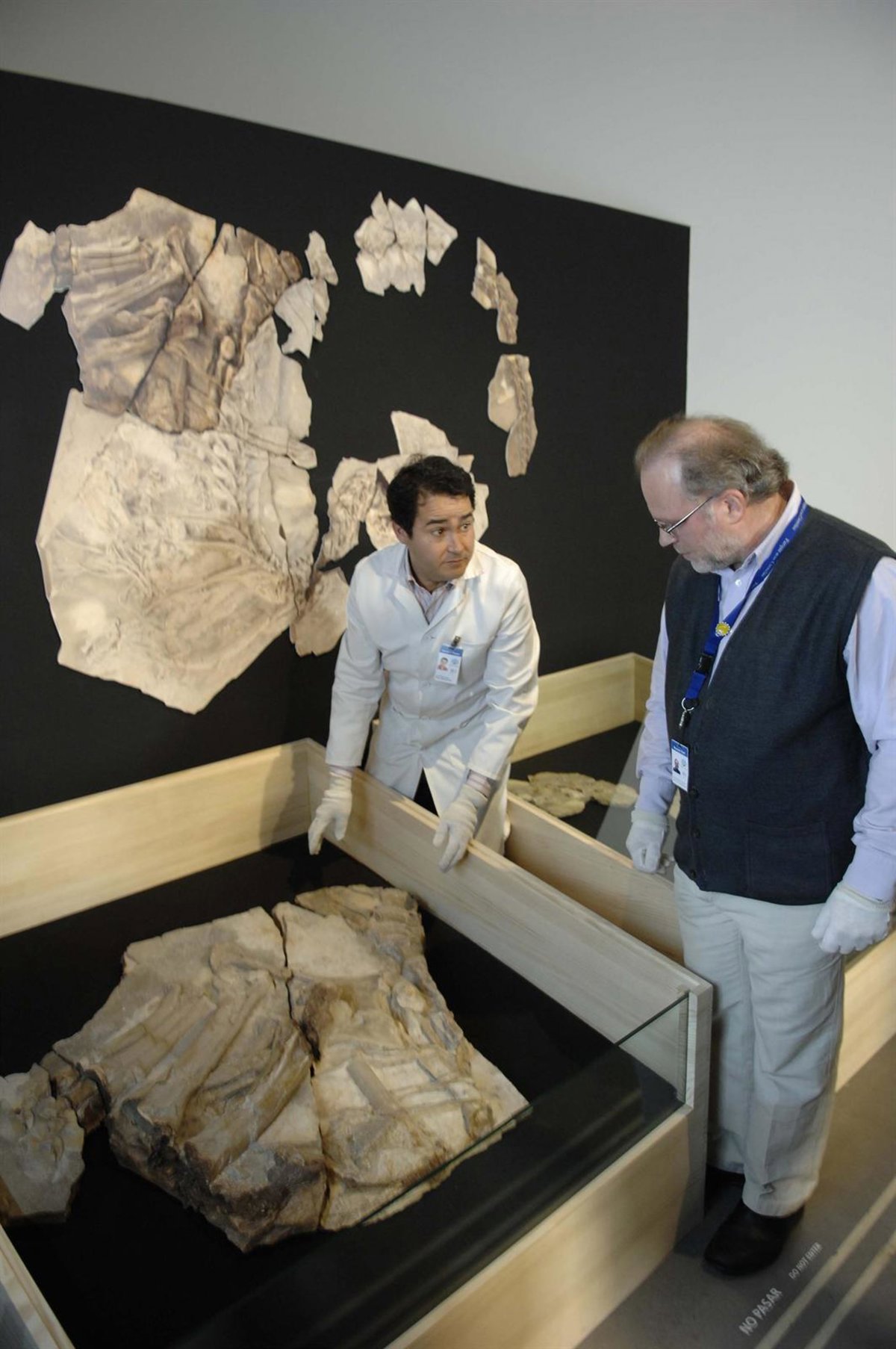 Se trata de una pata íntegra del 'Concavenator corcovatus', el dinosaurio más completo que se ha encontrado en España hasta el momento y una de las piezas estrella de la muestra. Esta es la primera vez que los restos del 'Concavenator corcavatus' se exponen fuera de su lugar de origen.