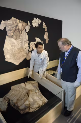 Con anterioridad a estos nuevos restos fósiles, la exposición ha contado con el cráneo, y parte de la cola que, junto con la pata, ofrecen una visión casi completa de la anatomía de este bípedo. Los únicos restos que no podrán verse en Granada son los correspondientes al abdomen porque están siendo objeto de una investigación en la actualidad.