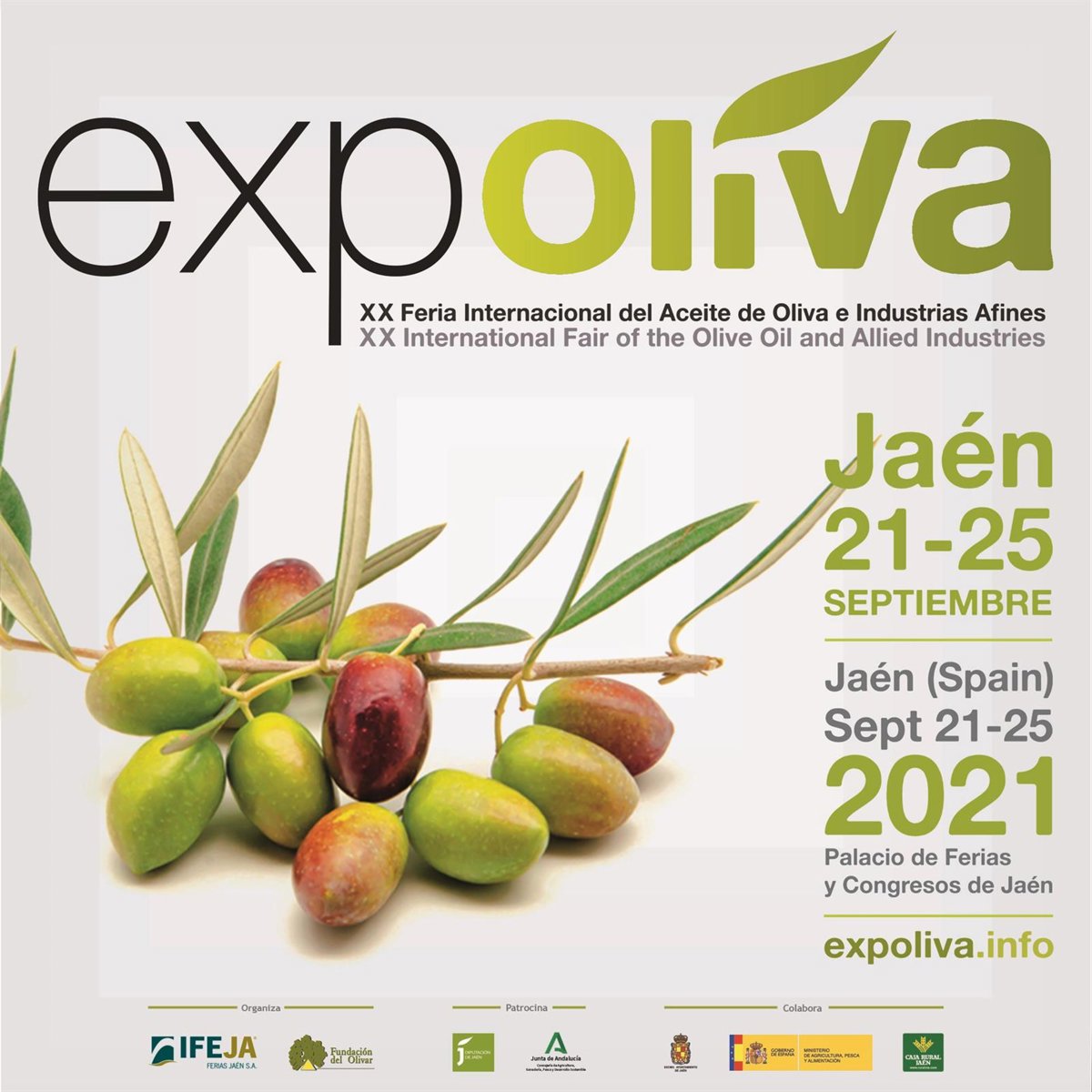 La XX Feria Internacional del Aceite de Oliva e Industrias Afines, Expoliva, tendrá lugar en Jaén entre los próximos 21 al 25 de septiembre, de modo que retrasa la fecha habitual de mayo, mes en el que se celebra cada dos años, debido a la actual situación sanitaria provocada por la covid-19.