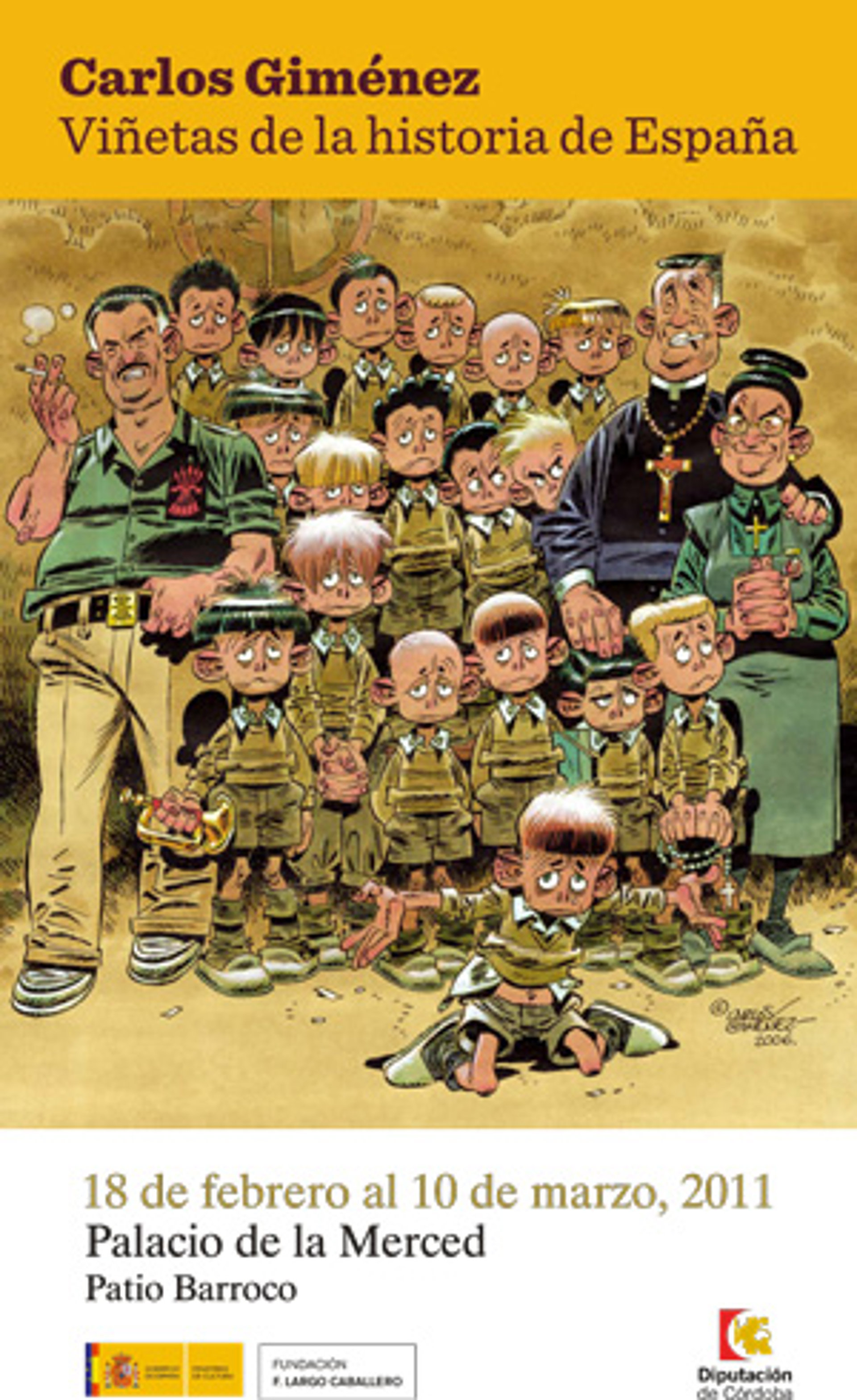 El Patio Barroco del Palacio de la Merced de Córdoba, sede de la Diputación, acoge desde este viernes la exposición de Carlos Giménez, 'Viñetas de la Historia de España', una muestra que ha sido organizada por la Fundación Francisco Largo Caballero y que repasa la obra de este dibujante sobre la Guerra Civil, el franquismo y los primeros años de la transición.