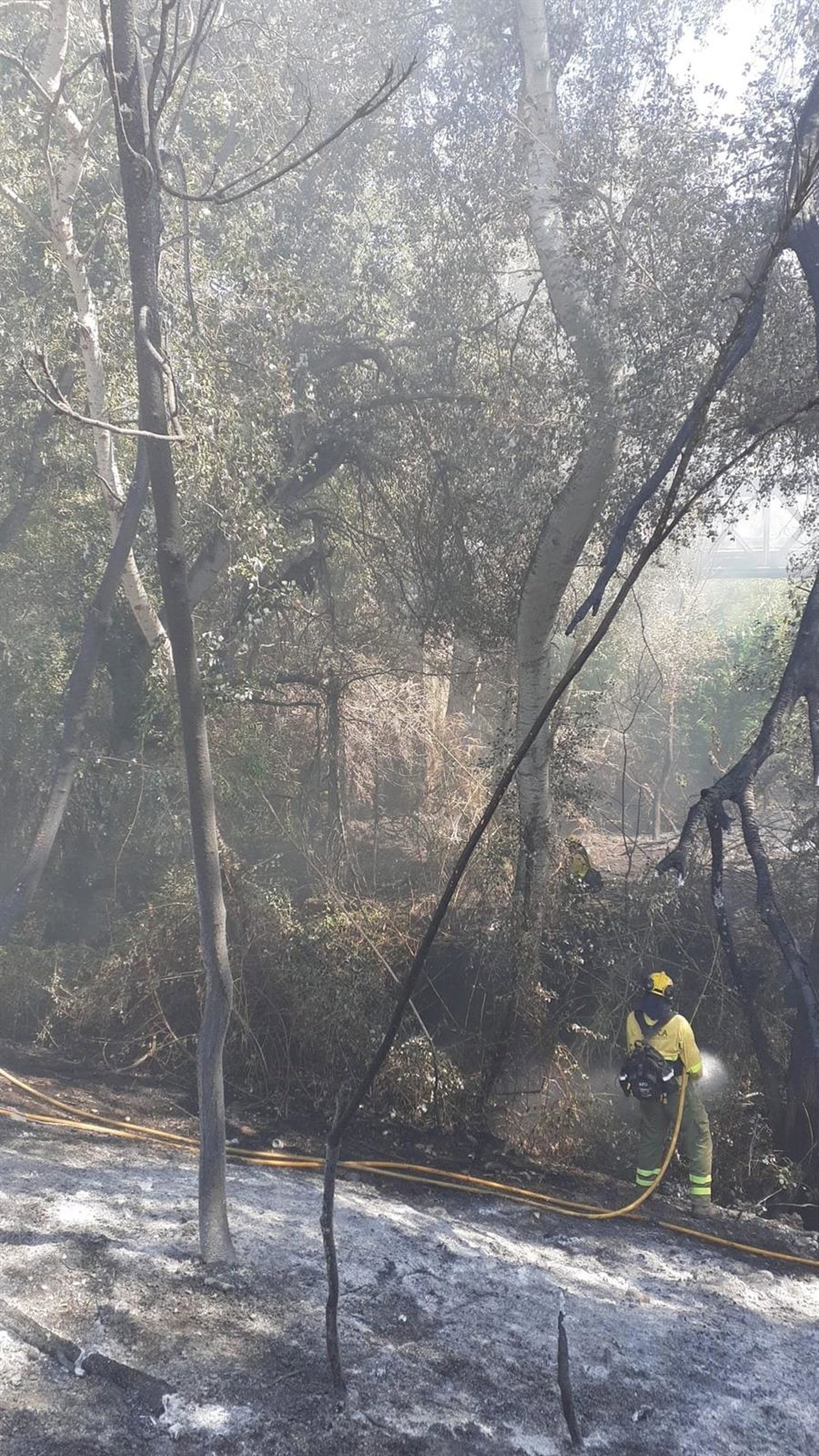 En la zona han permanecido en las últimas horas un vehículo pesado de extinción, un grupo de bomberos forestales y un agente de Medio Ambiente, quienes han trabajado en el "remate y liquidación" del siniestro.