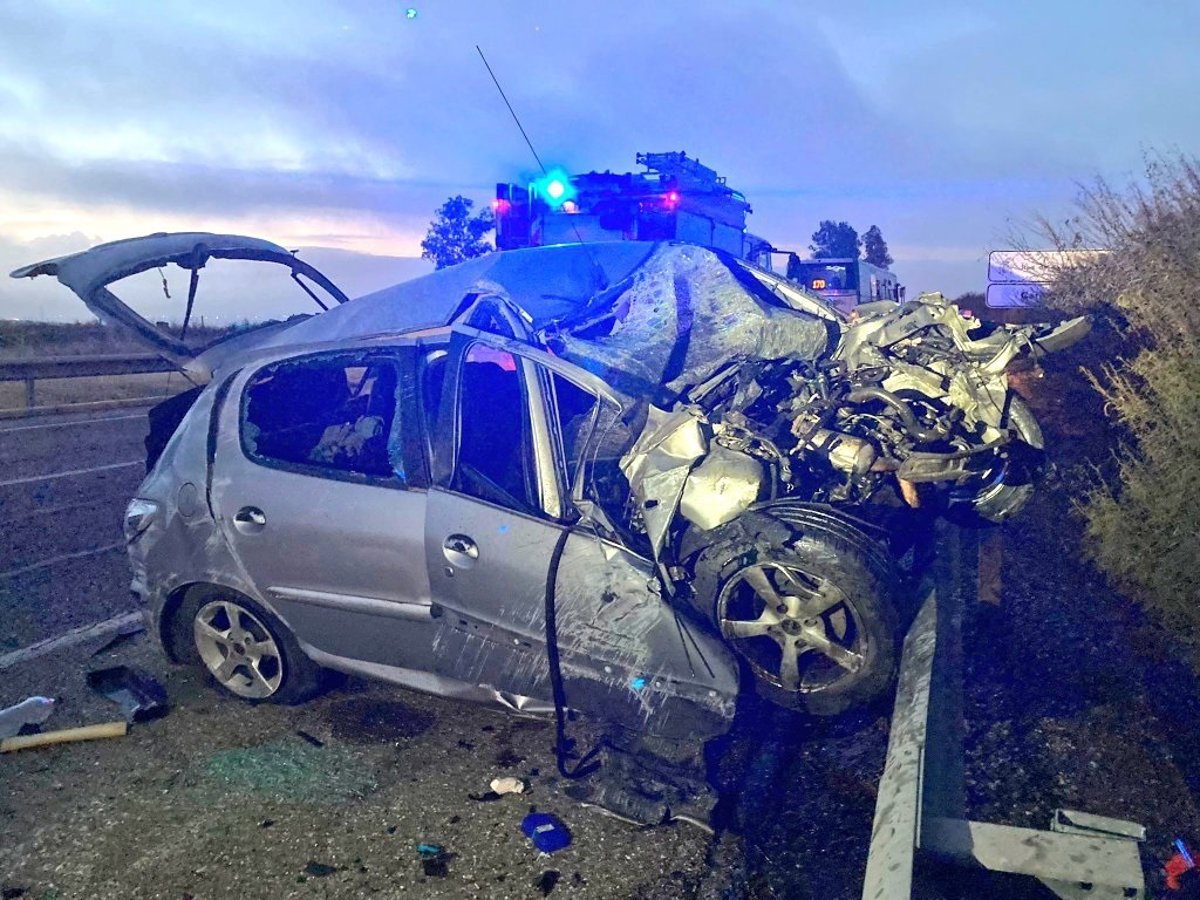 El siniestro se ha registrado en torno a las 07.20 horas y la víctima moral ha quedado atrapada en el interior del turismo, cuya parte delantera ha quedado totalmente destrozada, por lo que ha sido necesaria la intervención de Bomberos del Aljarafe.
