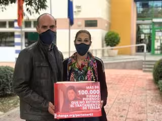 La familia de Teresa Muñoz, la enferma de esclerosis múltiple de Aguilar de la Frontera (Córdoba) a la que la Junta de Andalucía le ha retirado el tratamiento que recibía, ha advertido este viernes de que su estado "empeora" y frente a ello ha entregado en la sede de la Consejería de Salud de la Junta de Andalucía en Sevilla más de 100.000 firmas que ha conseguido en la plataforma 'Change.org' pidiendo que pueda continuar con el tratamiento para paliar su enfermedad.